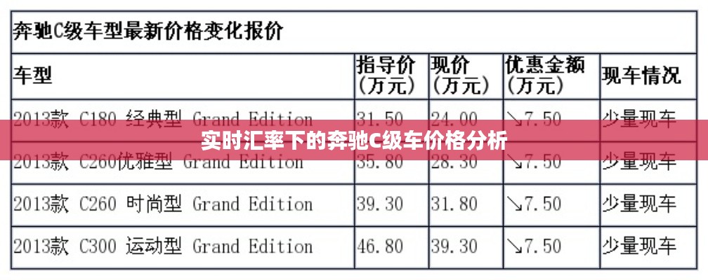 根据最新实时汇率,我们可以对奔驰C级车的价格进行分析,在汇率较高时,车辆价格可能相应上涨;而当汇率回落时,车辆价格可能随之下降,消费者在购买奔驰C级车时,需要根据当时的汇率情况来评估车辆的实际价格。