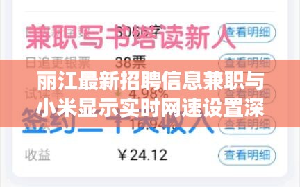 将丽江最新招聘信息兼职与小米显示实时网速设置结合起来看,我们可以发现这两者之间存在一定的联系,随着移动互联网的普及,越来越多的招聘信息兼职都是通过互联网发布的,而小米手机用户通过实时网速设置功能,可以更加便捷地获取这些招聘信息。