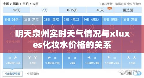 泉州明天的实时天气情况与xluxes化妆水价格之间看似没有直接关联,但实际上存在一些间接的联系,天气状况可能影响消费者的户外活动和购物需求,进而影响化妆品市场的销售情况,若明天天气晴朗,温度适宜,人们可能更倾向于外出购物,包括购买化妆品,这可能会带动xluxes化妆水的销量,反之,若天气不佳,人们可能更多选择室内活动,化妆品的购买需求可能会相对减少。
