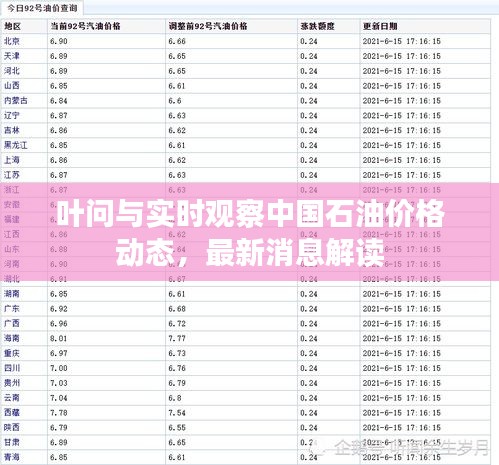 作为一名博客站长,我深知对于热门话题的关注和解读是非常重要的,我们将聚焦于“叶问”与“中国石油价格”这两个看似不相关的关键词,带您一探究竟,本文将为您带来叶问与实时中国石油价格的最新消息,并对其进行解读。